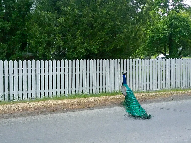 A fun surprise at the end of my day! All my favorite colors are in the train of this peacock and he’s got me thinking of daring color combinations for a Library space. Can you imagine?!
